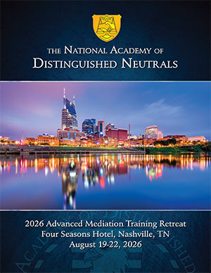 Held every 2 years, the NADN Advanced Training Retreat has become the most anticipated professional and social event on the calendar for experienced mediators across North America. Over 3 days, the Retreat brings together renowned thought-leaders and some of the finest ADR trainers in the world to share their knowledge and experience with Academy Members. Spouses & family guests are very welcome to attend social events.